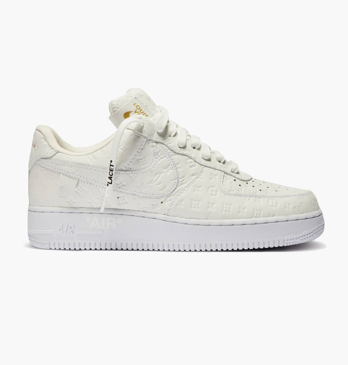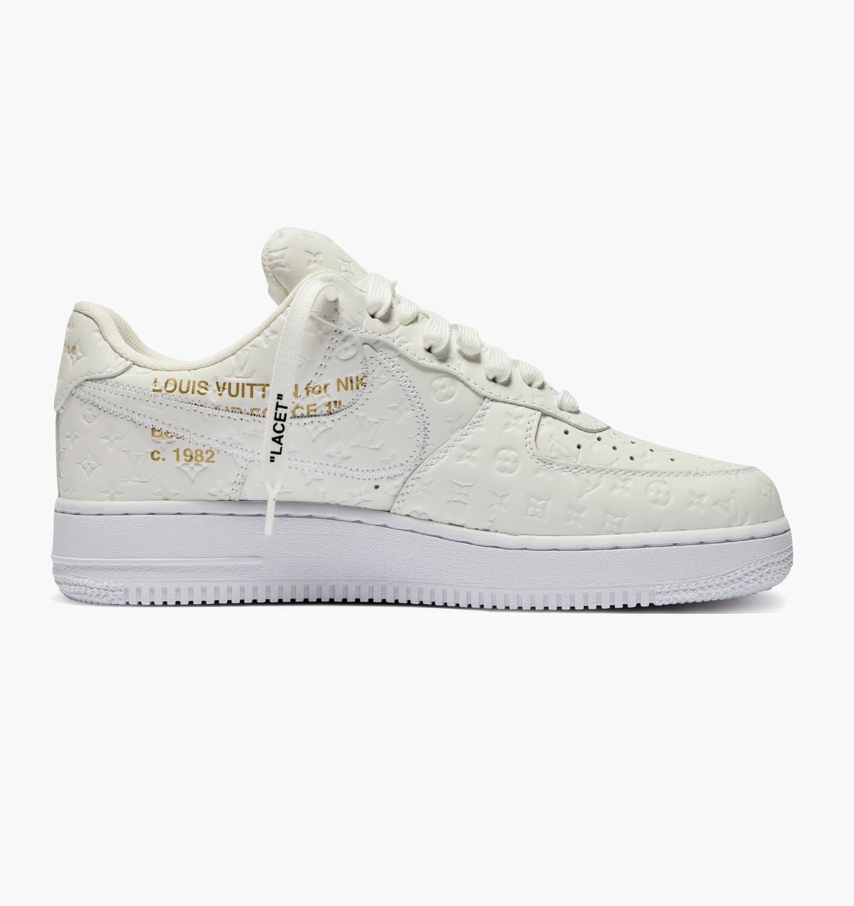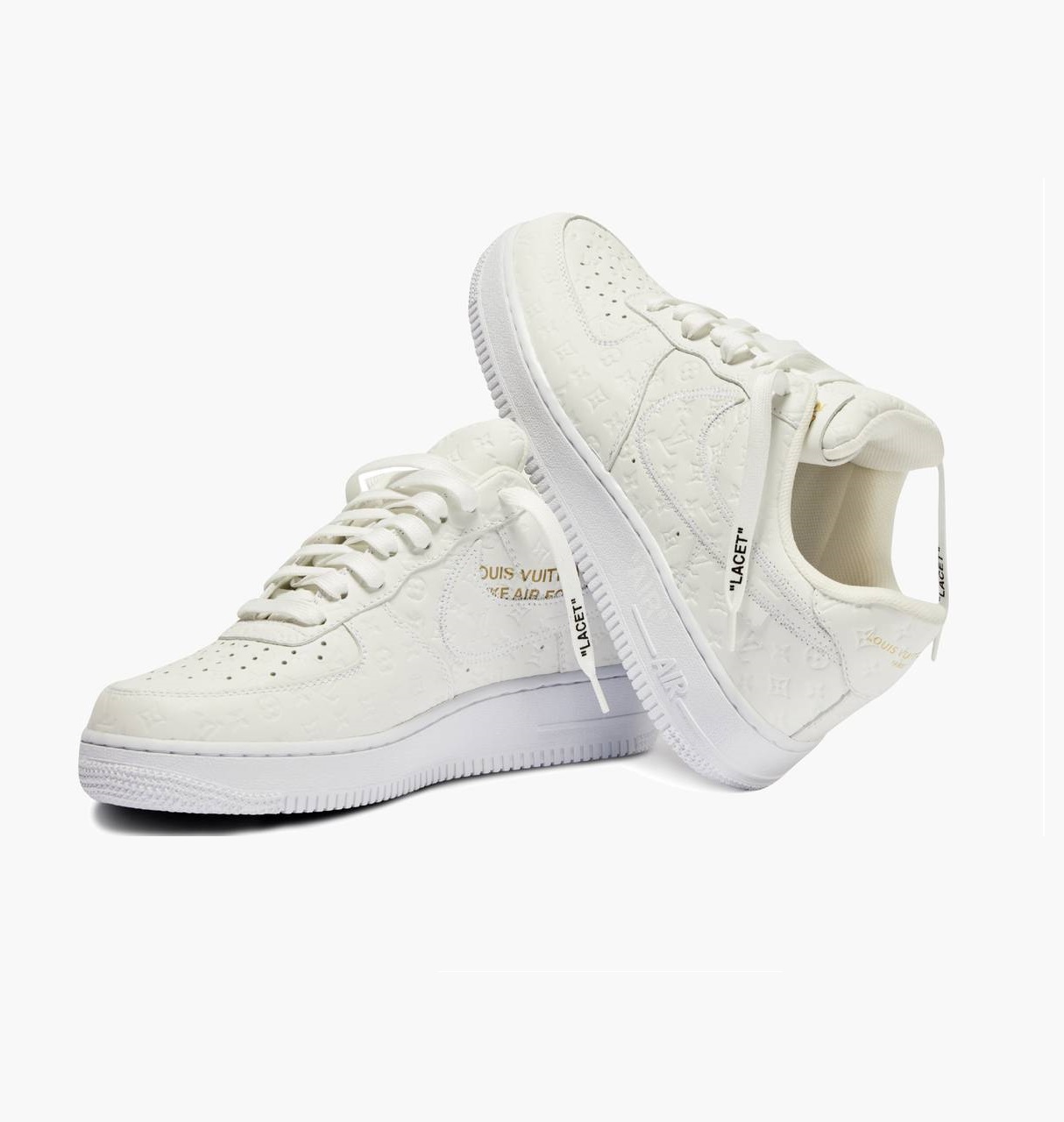 Nike Air Force 1 Low Louis Vuitton White Damier Azur – Celebrating its 40th year, the Nike Air Force 1 was designed in 1982 and is one of the most successful iconic shoes ever created. On the occasion of the Louis Vuitton Men’s Spring-Summer 2022 fashion show, Virgil Abloh collaborated with Nike to design 47 pairs of bespoke Air Force 1s, blending classic sneaker codes with Louis Vuitton insignia and materials in homage to hip-hop culture that formed it.